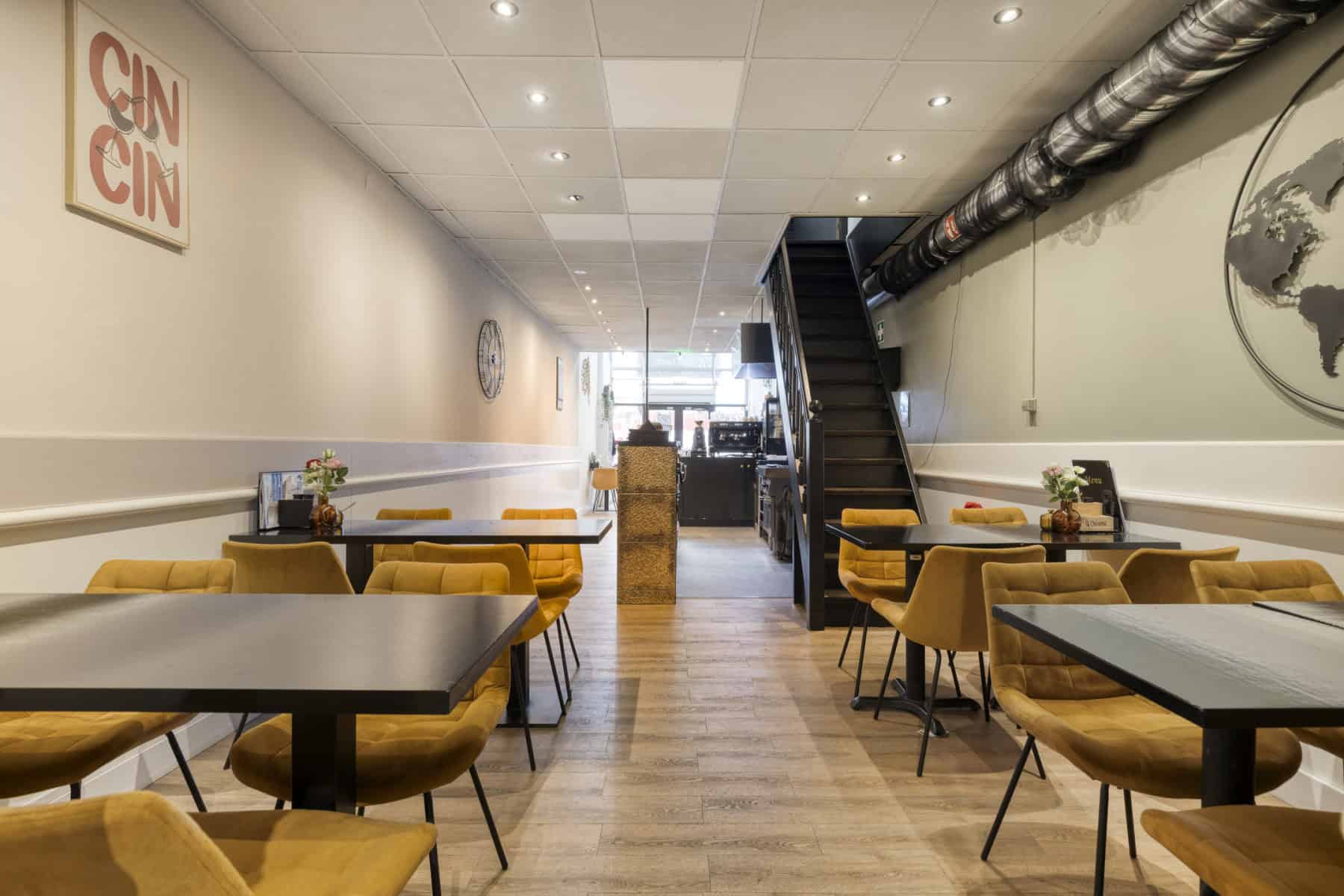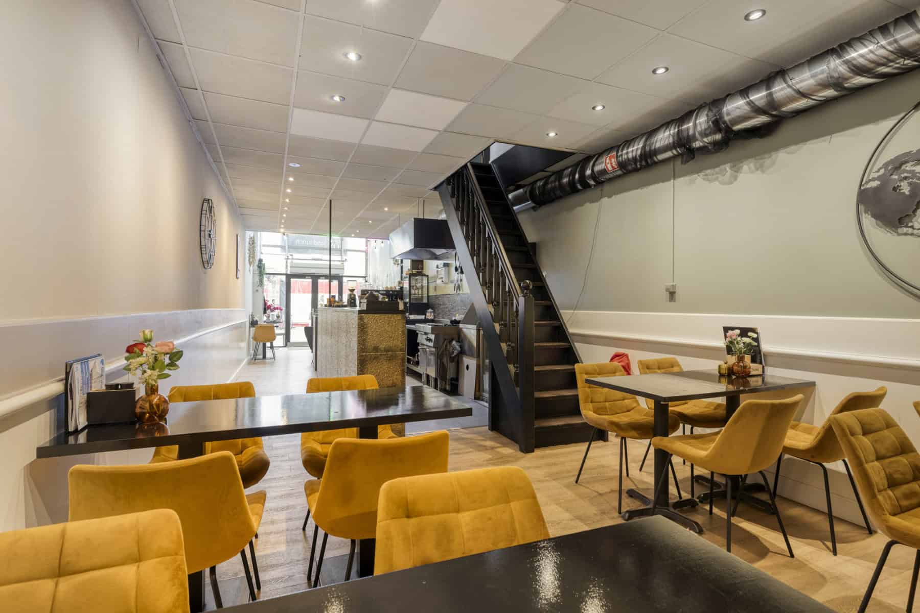 De horecaruimte is gevestigd in een karakteristiek pand uit 1925 en beschikt over een nette en functionele indeling. De totale oppervlakte van de begane grond bedraagt circa 70 m².
