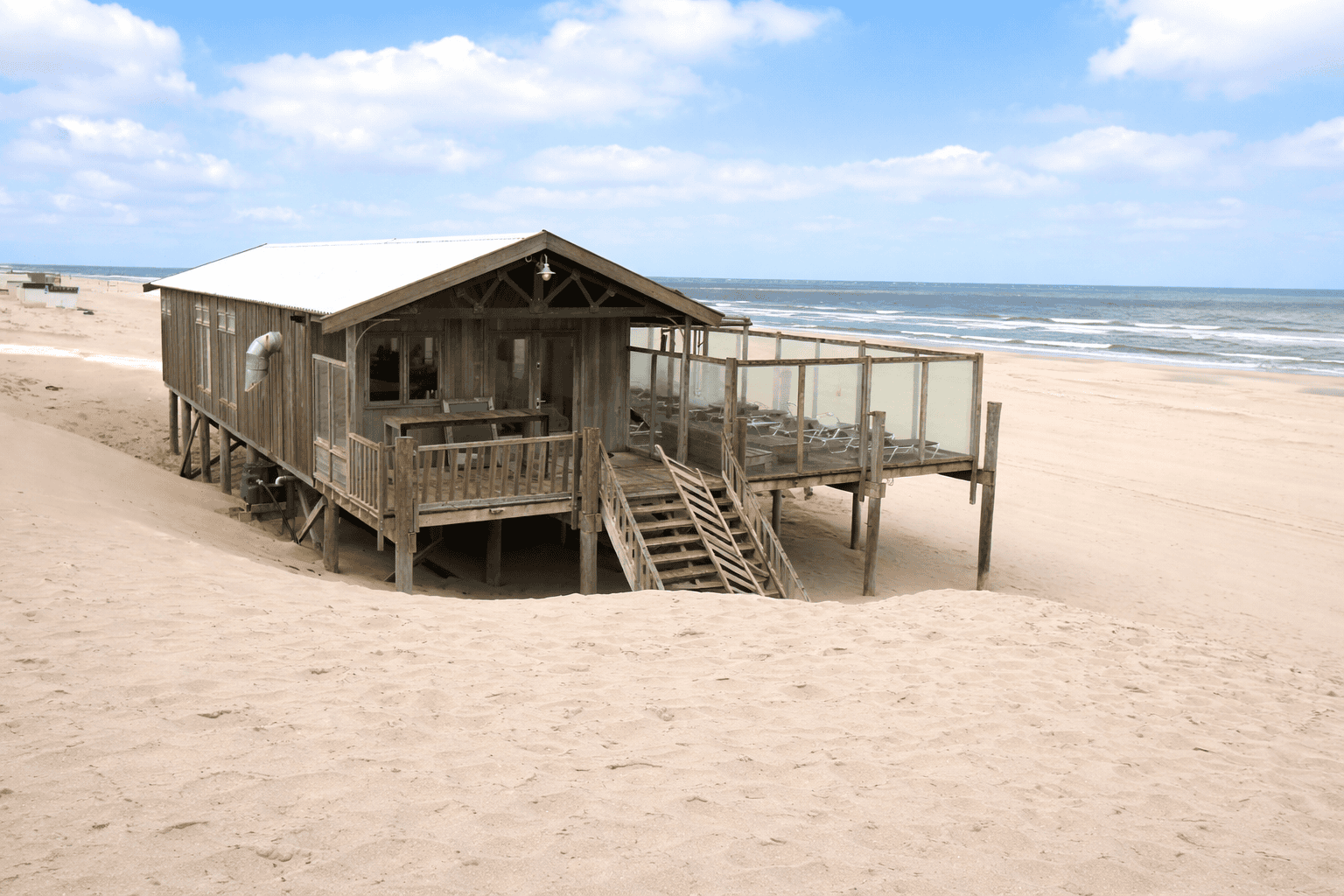Dit prachtige paviljoen ligt aan het Noordzeestrand van Texel, bij badplaats De Koog. Het schitterende gebouw is nieuw gebouwd in 2016.